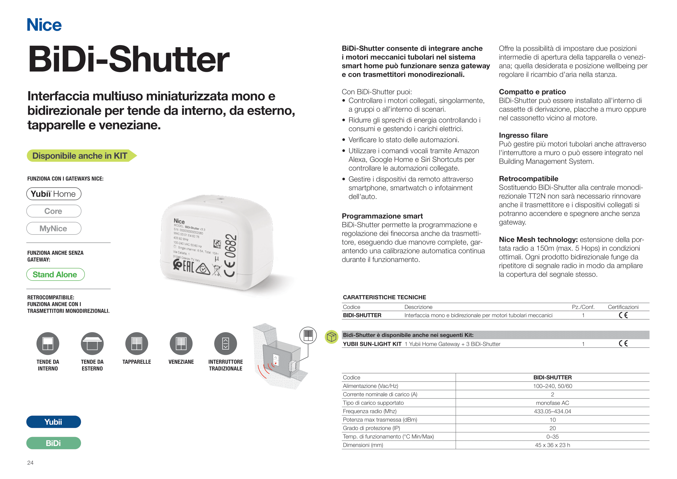 Nice - Interfaccia multiuso miniaturizzata mono e bidirezionale per tende da interno, da esterno, tapparelle e veneziane